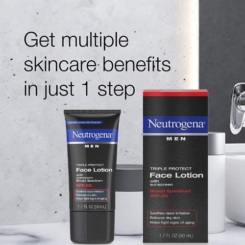 • 1.7-fluid ounce tube of Neutrogena Triple Protect Men’s Daily Face Lotion with Broad Spectrum SPF 20 sunscreen to help smooth skin while fighting the signs of aging