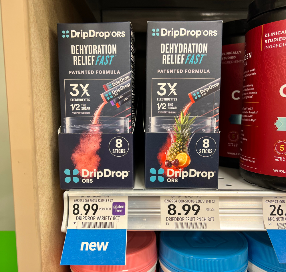 DripDrop Electrolyte Powder Sticks, 8 pk, $8.99