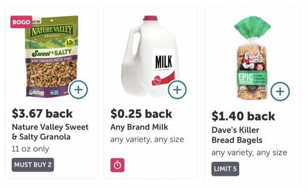 Ibotta added new cash back offers this week — including any brand milk, MorningStar vegetarian products, Triscuits, Dave’s bread, Nature Valley granola, Kraft cheese, Yoplait yogurt, Celestial Seasonings tea, Cheerios, and more! Check them out here.