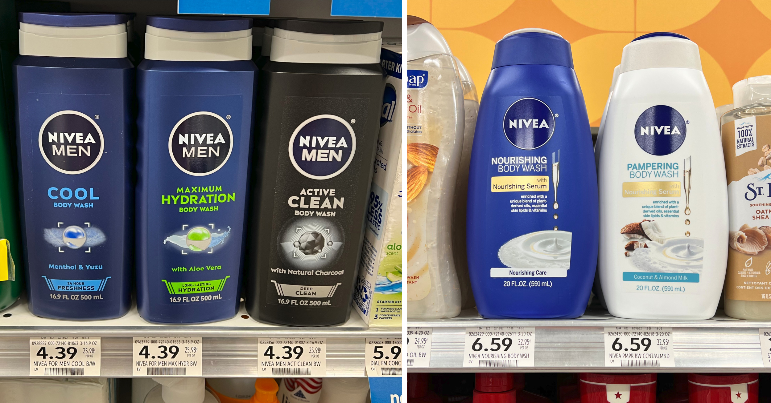 Nivea Body Wash, 16.9 to 20 oz, $4.39+