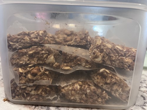 - Using a sharp knife or pizza cutter, slice them into bars. Place in another container with wax paper between the layers so they won’t stick together.