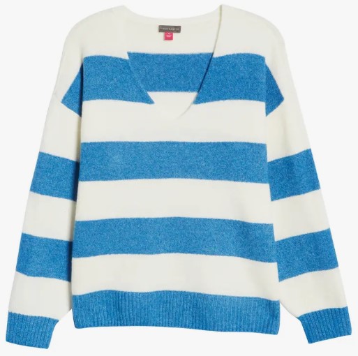 Stripe V-Neck Sweater in Blue – $7.47 (reg. $69)