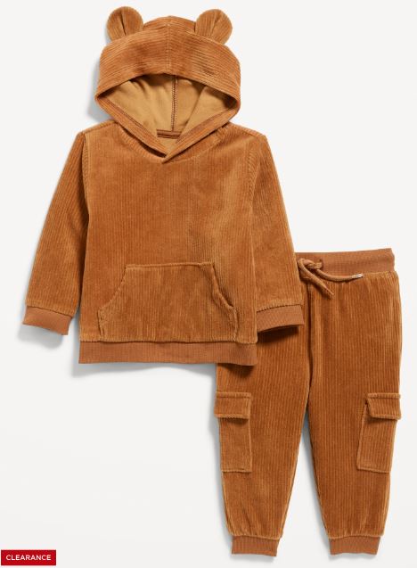 Unisex Ribbed Velour Critter Hoodie and Cargo Joggers Set for Baby $14.47 (reg. $29.99)