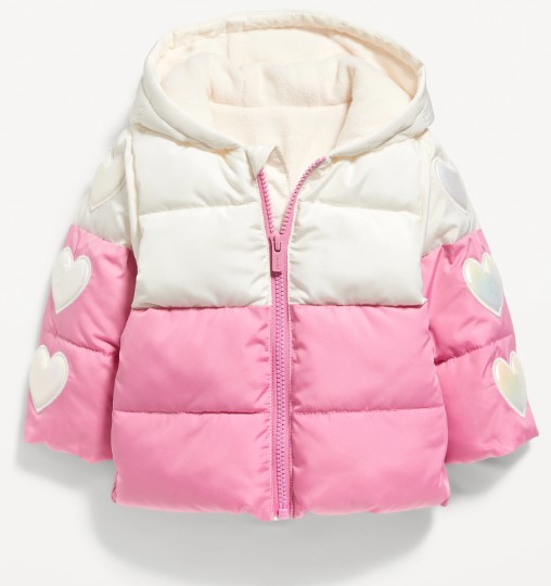 Water-Resistant Color-Block Heart Puffer Jacket for Baby – $12.97 (reg. $40)