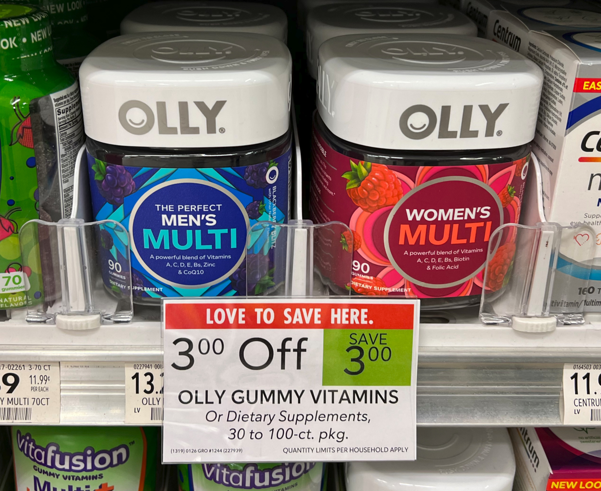 –$3/1 Olly Vitamin or Supplement, 30 ct or larger, Publix Coupon, New Year Save More Booklet (Valid 1/21 to 2/17)