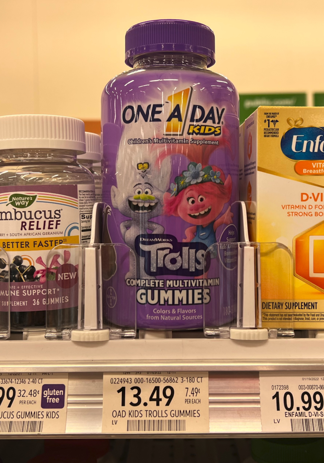 Spark the imagination and give nutritional support with a complete multivitamin for kids in fun Trolls character shapes.