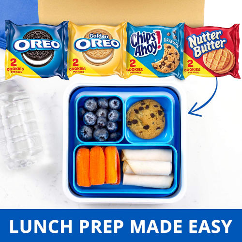 • This bulk variety package contains 56 snack packs: 14 each of OREO Chocolate Sandwich Cookies, OREO Golden Sandwich Cookies, CHIPS AHOY. Chocolate Chip Cookies, and Nutter Butter Sandwich Cookies.