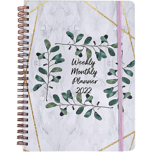 Weekly Monthly Planner, Jan 2022 – Dec 2022, Hardcover , Tabs, Elastic Closure, and Inner Pocket