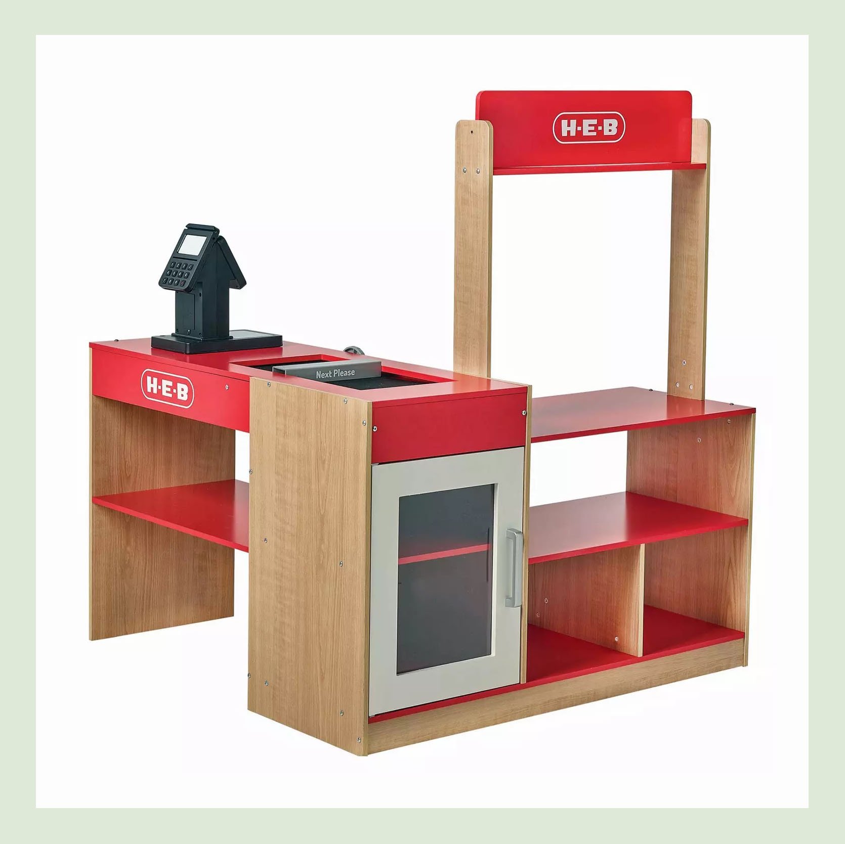 Imagination toys were my favorite things to play with the kids when they were toddlers. This grocery store (while big and not my favorite aesthetically) was so much more fun than a kitchen because they felt like they had a grown-up job, with credit cards and money. They played with it til they were 5 and 7. The belt actually moves and every item beeped when you scanned it. Our kids rarely played with the toy kitchen but played “store” for hours and hours.