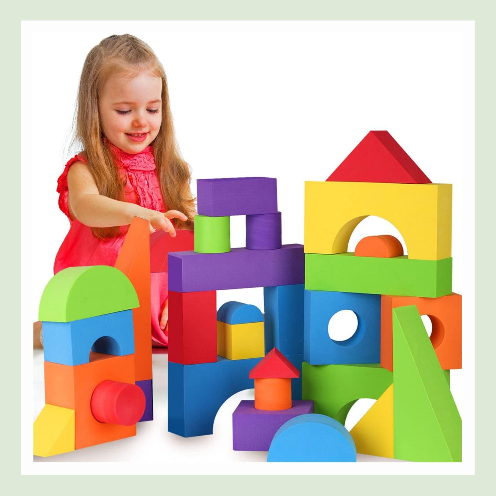 We had the larger version of these faux wood blocks and they were a huge hit for YEARS – they could go so high without fear of tumbling on them when they were little. These colorful ones are also a classic.
