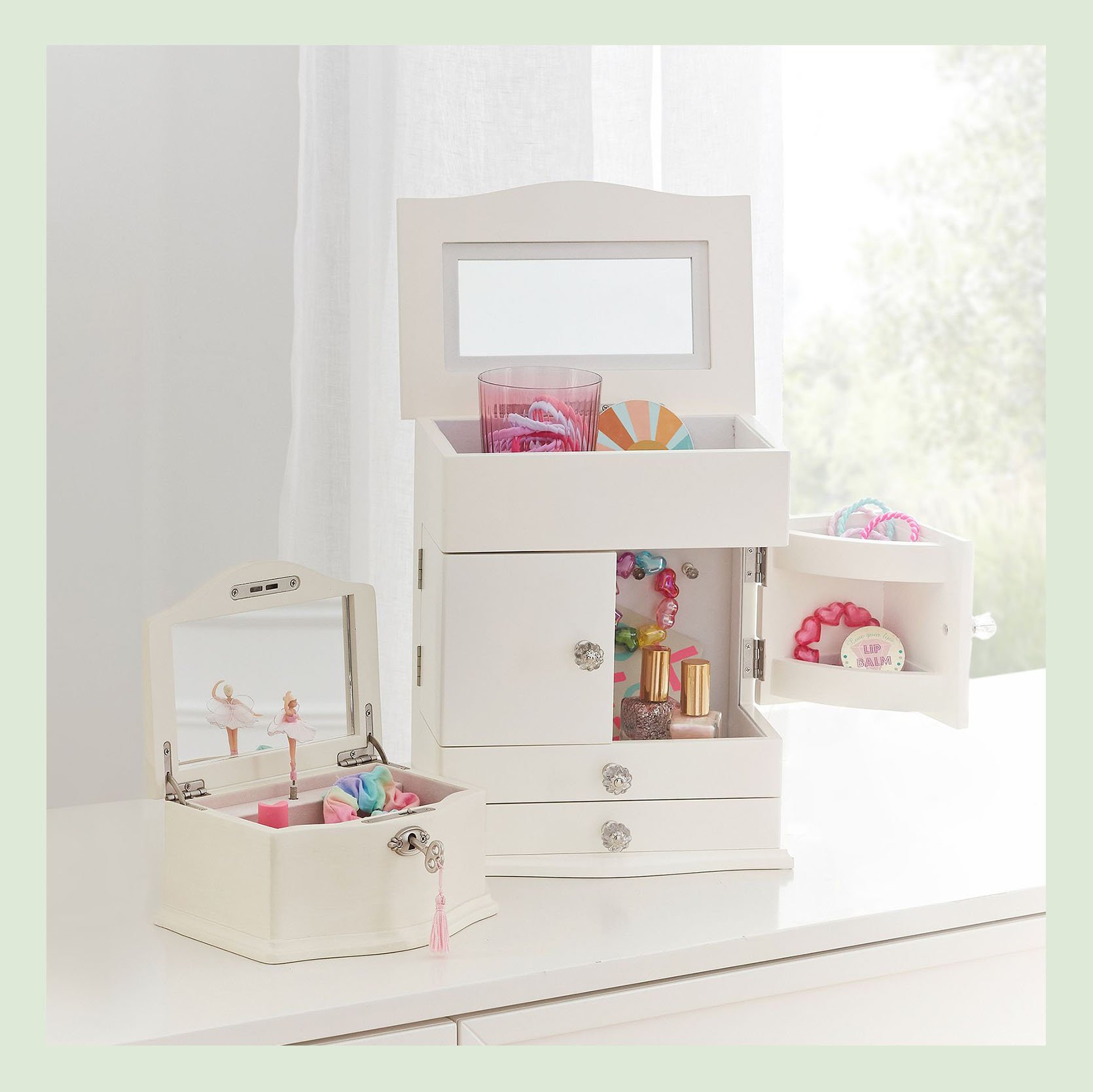 Jewelry Boxes (or any secret boxes with a key). Elliot has the Pottery Barn ones (and I let her buy trinket boxes when she vintage shops with me). Most kids just like a box that only they can open that feels secret and private (same:)).