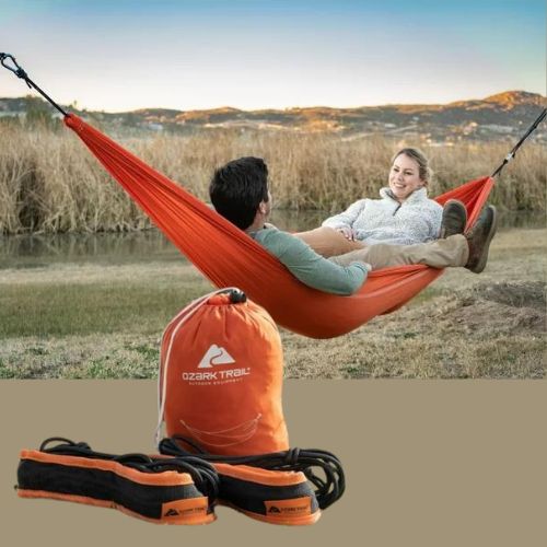 Hop over to Walmart and get a deal on Ozark Trail Bull Creek Double Hammock (Orange). Enjoy hours of relaxation in a shady spot and make the most out of your time outdoors. Fit up to two people in the spacious hammock fabric that is both durable and stylish. The tree straps will securely fit the neighboring trees, or you can attach the hammock to a frame using strong steel hooks. Embrace the outdoors with a leisurely sway in the breeze and make the most of nice weather.