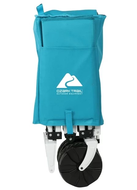 This Ozark Trail Wagon has a durable steel frame with blue mesh body to easily empty sand and rinse off for quick and simple cleaning. The telescoping handle and foldable design make it easy to store.