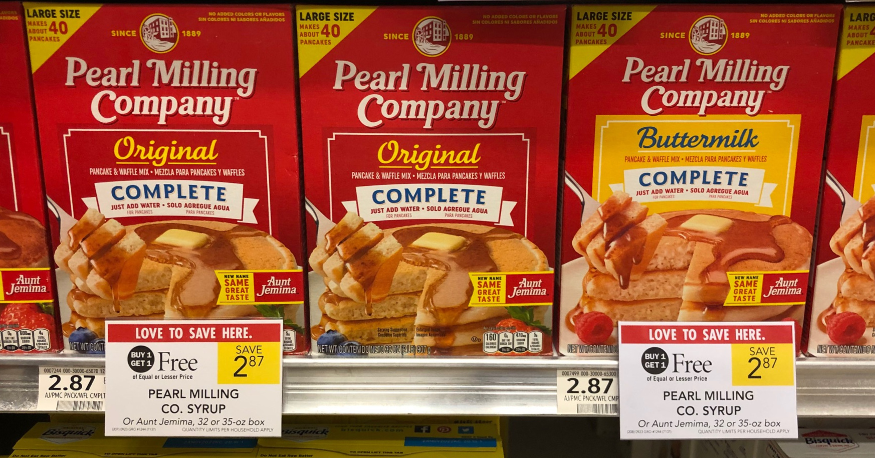 Pearl Milling Co. Pancake & Waffle Mix or Aunt Jemima, 32 or 35 oz, BOGO $2.87