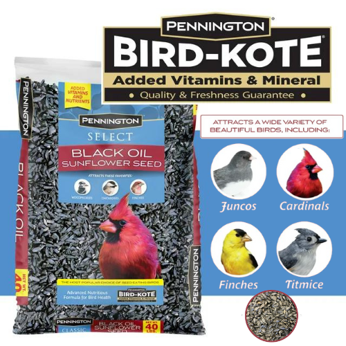 • Pennington Black Oil Sunflower is the most popular choice of seed-eating birds