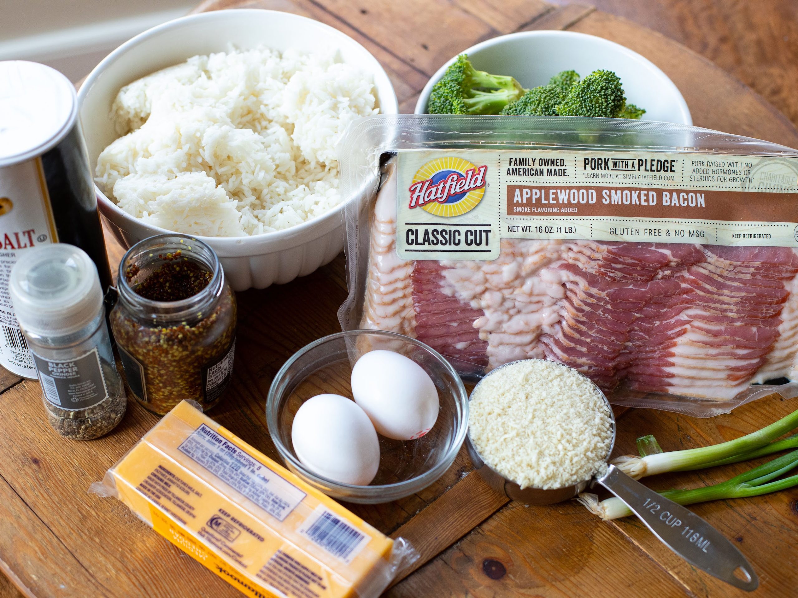 Just don’t leave out the Hatfield Bacon. The smoky bacon flavor is such a perfect combination with the rice and broccoli and really gives the rice cakes so much amazing flavor. If you don’t have a couple of packs of Hatfield Bacon on hand at all times, you really should!