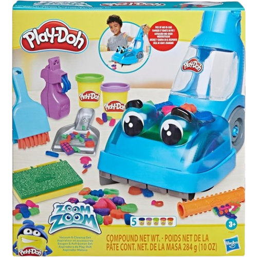 - ZOOM ZOOM THE PLAY-DOH VACUUM: Your trusty cleanup companion. This kids’ cleaning set comes with a toy vacuum cleaner and fun tools to encourage kids to get creative and tidy up after themselves