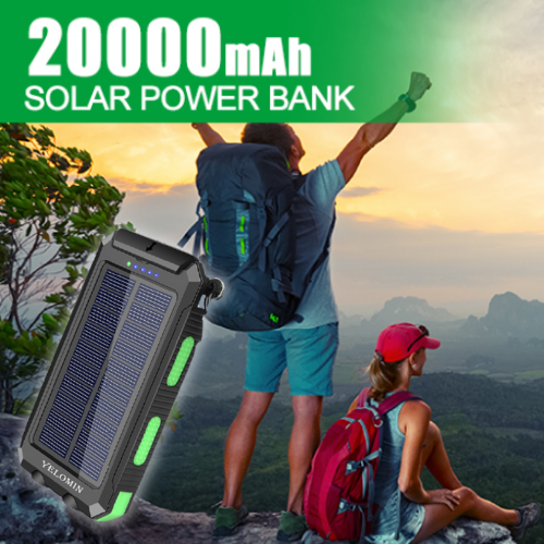 - High-Quality Ultra Portable Solar Charger: 20000mAh solar bank is made of reliable and eco-friendly ABS+PC+Silicone material which performs excellent ability to dissipate heat. This rugged solar power bank has a protective cover is attached to the outside of the charging port, so it has a waterproof and dustproof function. In addition, it is also equipped with a carabiner, which you can hang on your backpack while climbing the mountain and charge this power bank through solar energy.