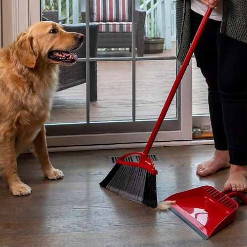 - CLEAN PET HAIR LIKE A PRO: Cleans 99% of dust, dirt, and hair in one sweep with V-shaped bristles for better floor contact while the angled broom head makes accessing corners a breeze