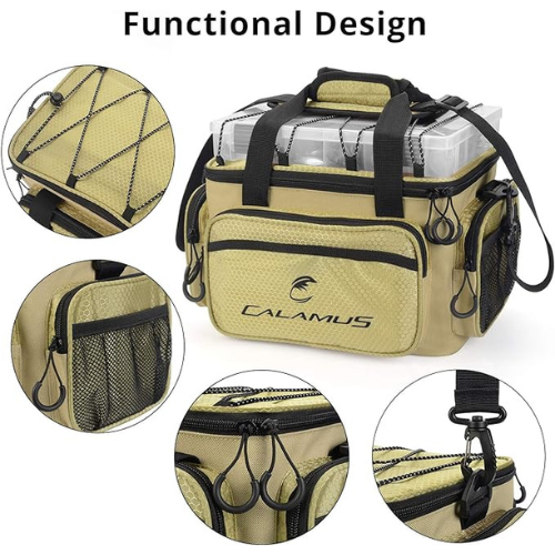 • Comfort and Storage – This padded shoulder strap and handle provide extra comfort for oversize loads. Calamus fishing tackle bags are comfortable to carry, easy to store, and offer best in class value! Load up your tackle box trays with soft baits, fishing lures, crank baits, jigs, hooks, weights, terminal tackle and rigs