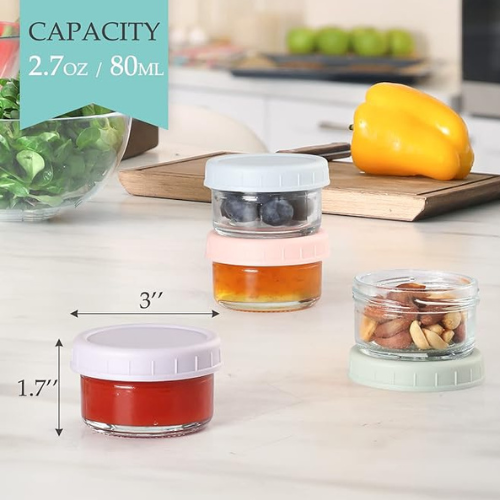• RELIABLE MATERIAL: The small containers are made of high quality glass which is eco-friendly, reusable, and doesn’t contain anything harmful. The lids are made of BPA free plastic which is strong and long lasting. The containers are so versatile as they are Dishwasher, Fridge and Freezer safe.