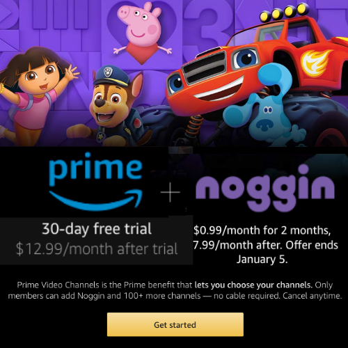 Hop over to Amazon and get a deal on Noggin $0.99/month for 2 months. Prime Video Channels is the Prime benefit that lets you choose your channels. Only members can add Noggin and 100+ more channels — no cable required.