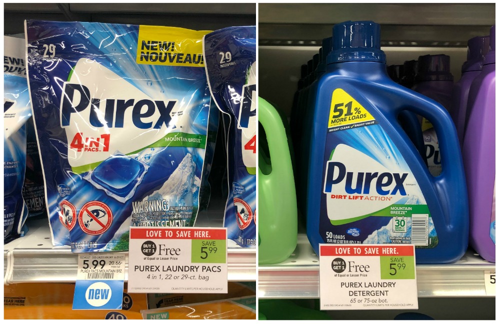 If Purex is your preferred brand of laundry detergent, head to Publix and grab a nice deal. You can pick up Purex Laundry Detergent Pacs or a bottle of liquid detergent as low as $2 after sale and coupon.