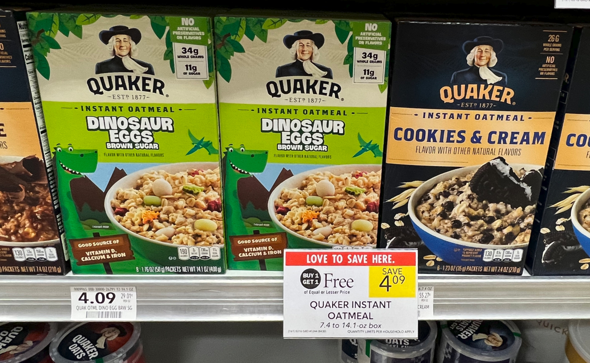 Quaker Instant Oatmeal, 7.41 to 14.1 oz, BOGO $4.09