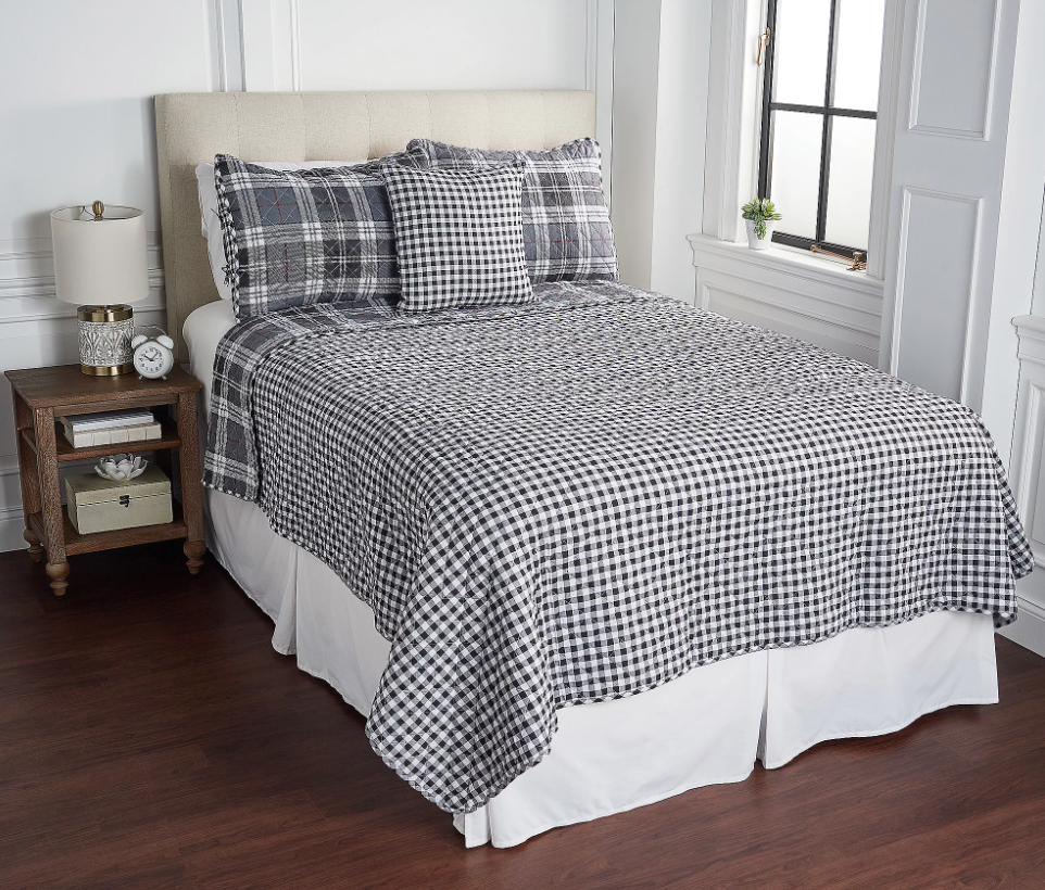Home Reflections Reversible Plaid Quilt Set w/Pillow- Queen – $44.99 (reg. $91)