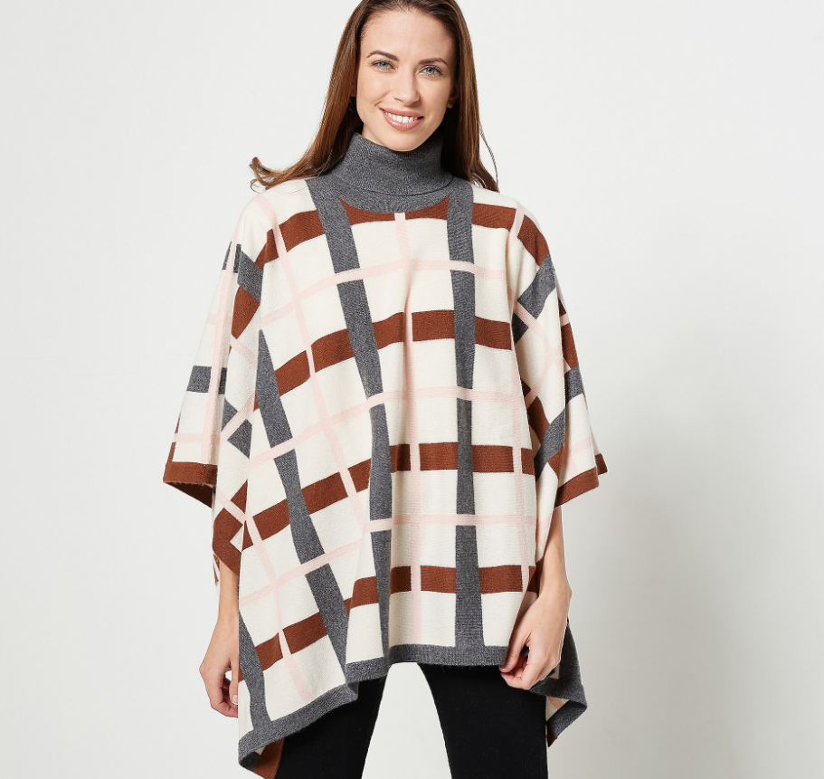 Soft by Naadam 100% Cashmere Plaid Jacquard Poncho – $117.99 (reg. $314)