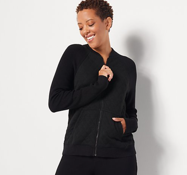 Isaac Mizrahi Live! SOHO Mixed Media Zip Jacket with Pockets, Size L – $19.99 (reg. $80)