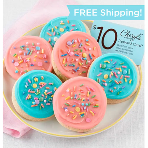 - The sampler will arrive with a $10 Reward Card to use towards a future Cheryl’s Cookies purchase in next four months.