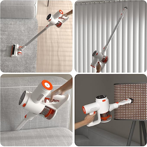 - HEPA Filtration System: With the high-density HEPA which removes up to 99.99% of microscopic dust particles as small as 0.1 microns, this cordless stick vacuum provides ultimate purified air and excellent cleaning experience for every users. Washable and recyclable HEPA filter is durable and easy to clean. They also provide you with another 2 filters replacement so that you can use it alternately