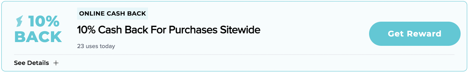 - 1. Explore our cash back page. Or navigate to your favorite merchant. You’ll see cash back offers that look like this: