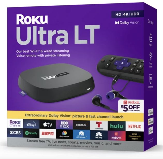 Or get this Roku Ultra LT Streaming Device 4K/HDR/Dolby Vision/Dual-Band Wi-Fi® with Roku Voice Remote and HDMI Cable for just $34 (regularly $80)!