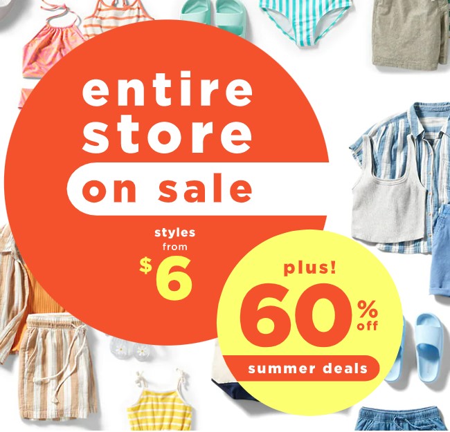 Entire store on sale, styles from $6. Plus 60% off summer deals