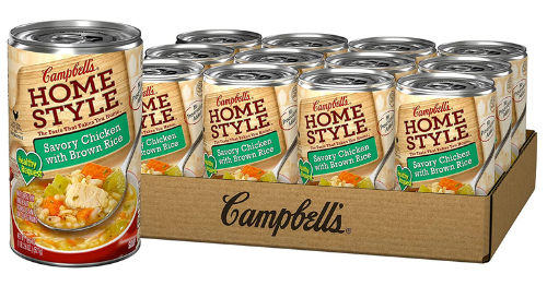 - Campbell’s Homestyle Soup: Twelve (12) 18.6 oz cans of Campbell’s Homestyle Healthy Request Chicken with Brown Rice Soup