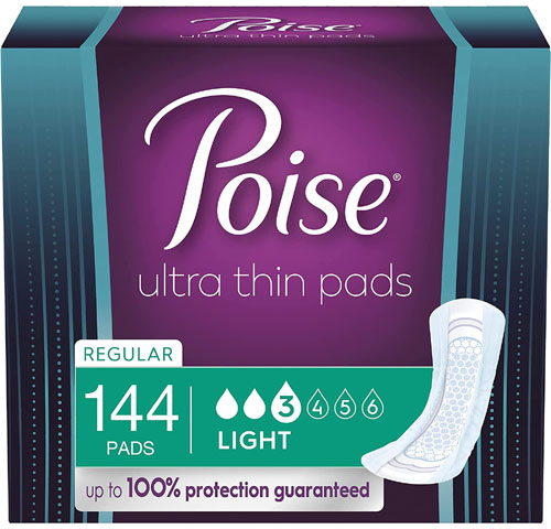 - Absorbent pads are individually wrapped in a compact feminine pouch, Poise incontinence products always ship in a discreet box, FSA-eligible in the U.S., Packaging may vary from images shown