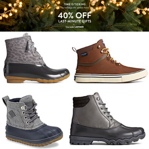 Hop over to Sperry.com and score HOT Buys on Sperry Shoes with 40% Off Last Minute Code + Free Shipping! Use the code LASTMIN to pay the discounted price. Plus, shipping is free on all orders! Save on over 200 pairs of shoes for the family, and enjoy your last minute gift hunting for comfort and style at great prices!