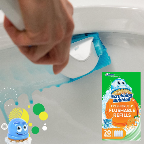 - Use Scrubbing Bubbles Toilet Cleaner and Fresh Brush Flushable Refills to get your toilet bowl clean; and for an even deeper clean, use Scrubbing Bubbles Fresh Brush Heavy Duty Non-Flushable Pad Refills