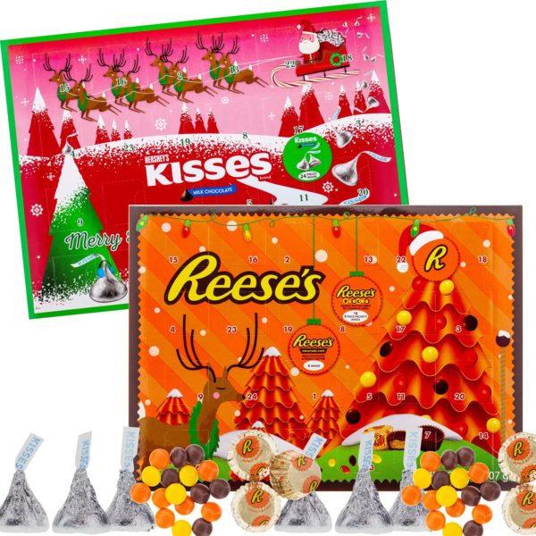 Set of 2 Hershey Milk Chocolate Kisses + Reese’s Peanut Butter Cups and Pieces Advent Calendars $19.95 (Reg. $30)