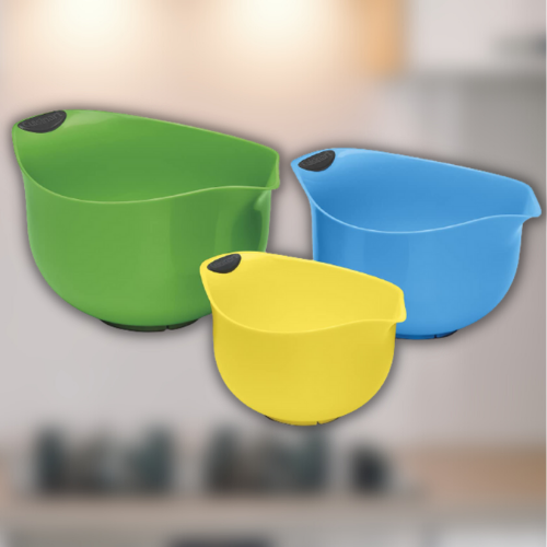 - Nonslip bottom keeps bowls stable during mixing