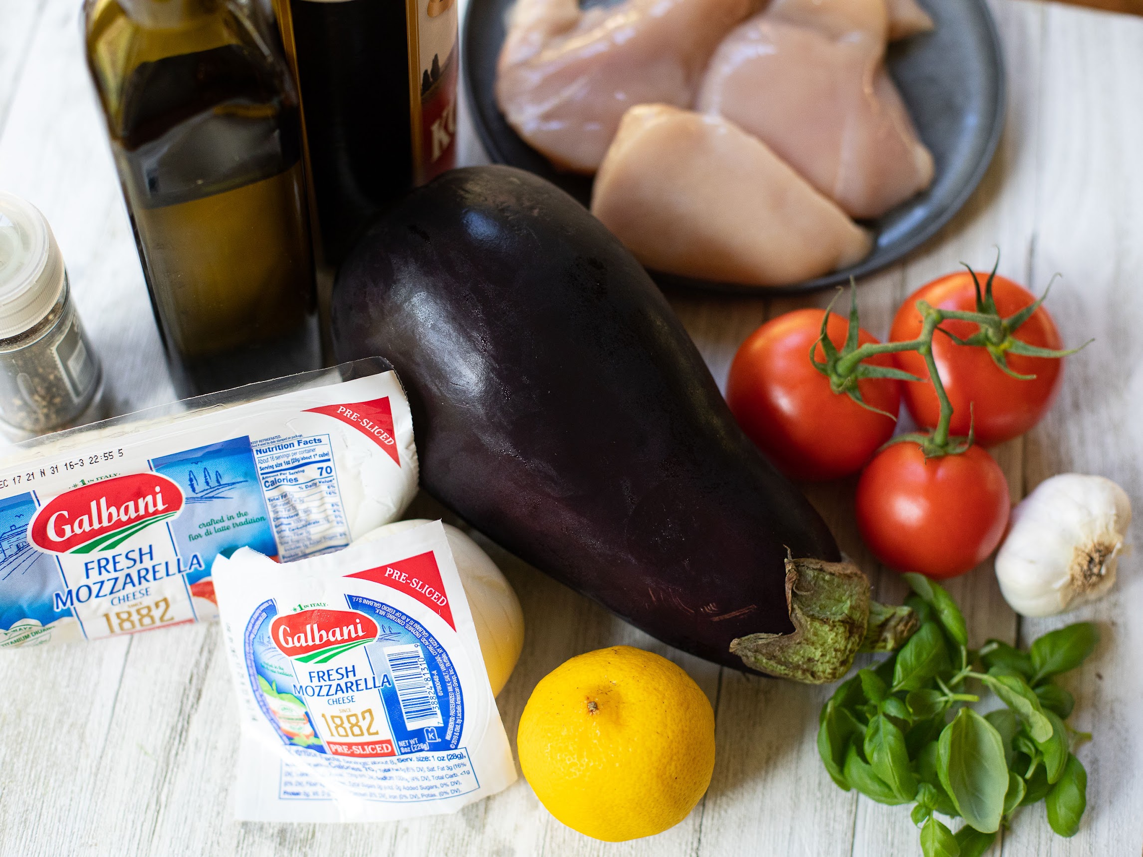Need a quick refresher on which mozzarella to use in your various meals? It’s easy… choose the delicious fresh mozzarella when you need a soft, delicate cheese for snacking, fresh salads, pizza Margherita and that Chicken Eggplant Caprese you see above. Then when you are baking or cooking with mozzarella, Galbani block mozzarella is the cheese to choose.