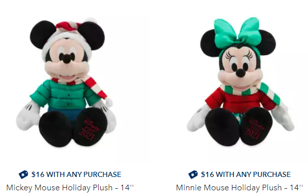 Grab a Mickey or Minnie 14″ Holiday Plush for $16 (reg. $24.99) with any purchase (valid through 12/25 while supplies last).
