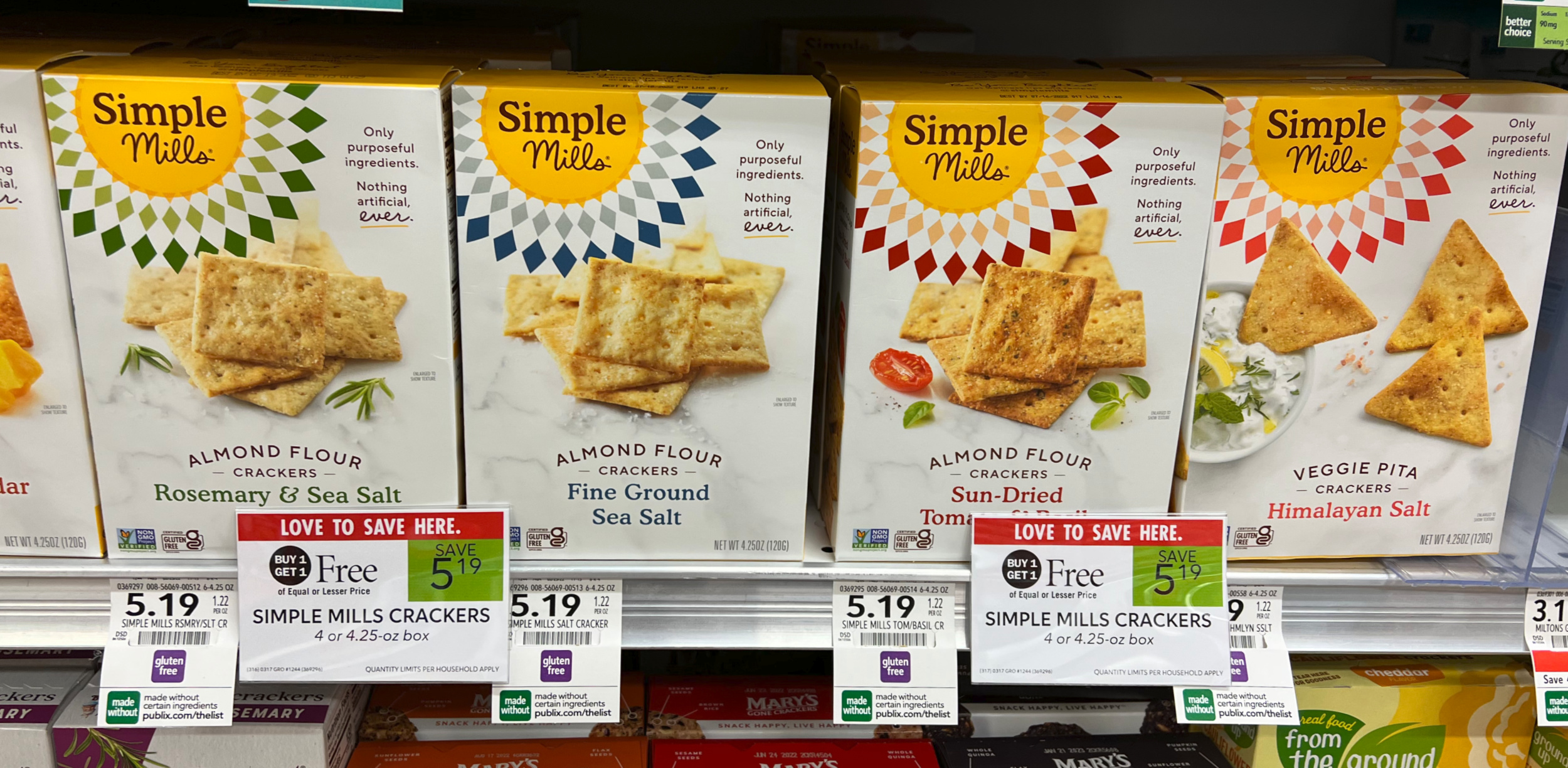 Get a nice discount on Simple Mills Crackers at Publix. Combine the BOGO sale and cash back offer to pay just $1.60 per box the next time you shop.