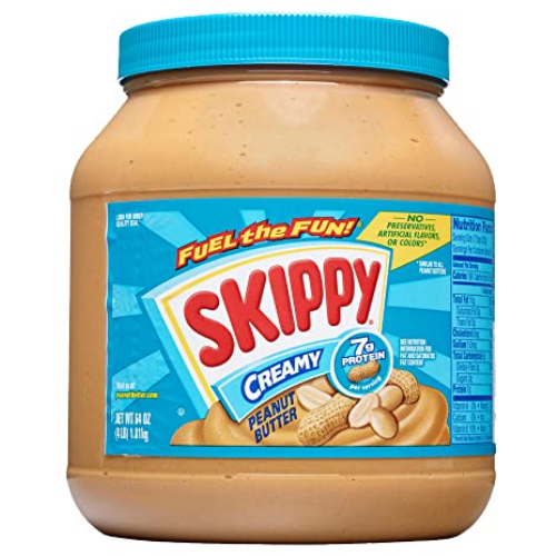 • One 64 oz. jar of SKIPPY Creamy Peanut Butter. Four simple ingredients with a sweet and savory peanut flavor and just seven grams of protein and zero grams trans-fat per serving