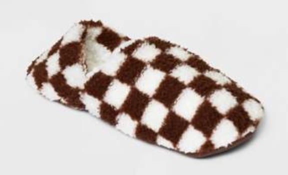 Get these Buffalo Check Plaid Faux Shearling Lined Pull-On Slipper Socks with Huggable Heel & Grippers for just $7!