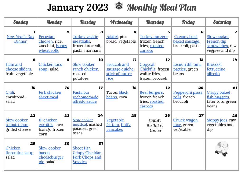 Southern Savers FREE January 2023 Monthly Meal Plan