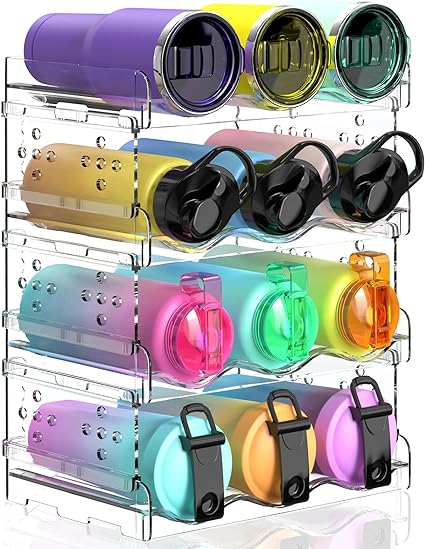 I bought this to help organize all the water bottles and tumblers we have in our cabinets, and I ended up buying a second one because I loved it so much. You can stack them on top of each other or side by side.