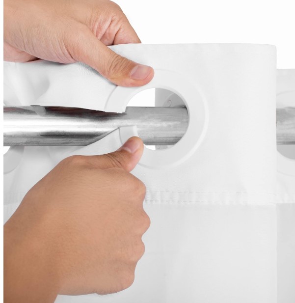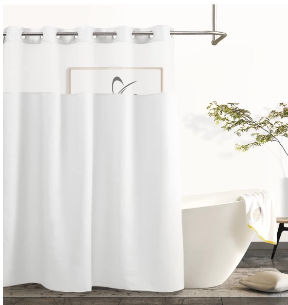 These are the best shower curtains ever! They have built in rings so you don’t have to worry about buying hooks or removing the rod. They also have a snap-on liner that is easy to take off and wash! Once you buy this, you’ll never go back!